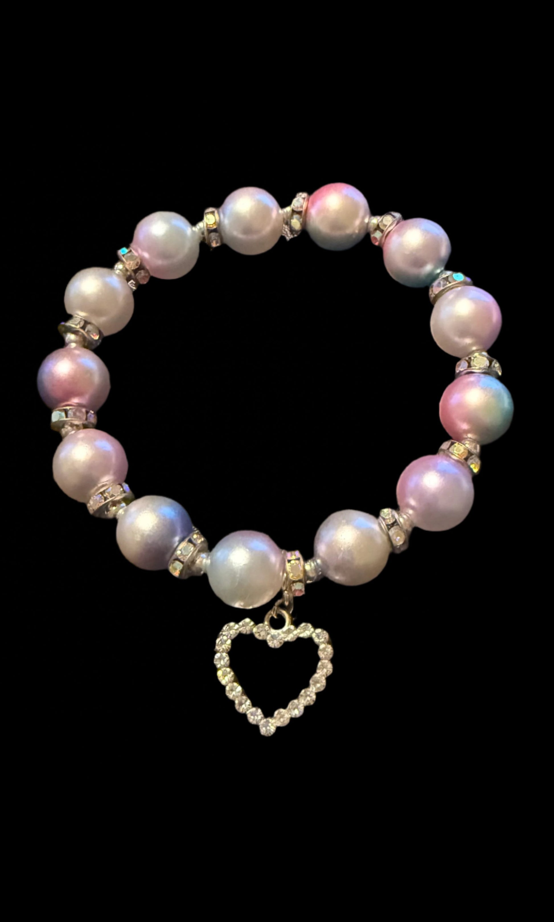 Soft glam meets sparkle in Radiant Crush a handcrafted stretch bracelet that glows with love and light. Featuring luminous pastel pearls in dreamy hues of lavender, pink, and baby blue, this beauty is finished with dazzling rhinestone spacers and a crystal-studded open-heart charm that catches every flicker of light.