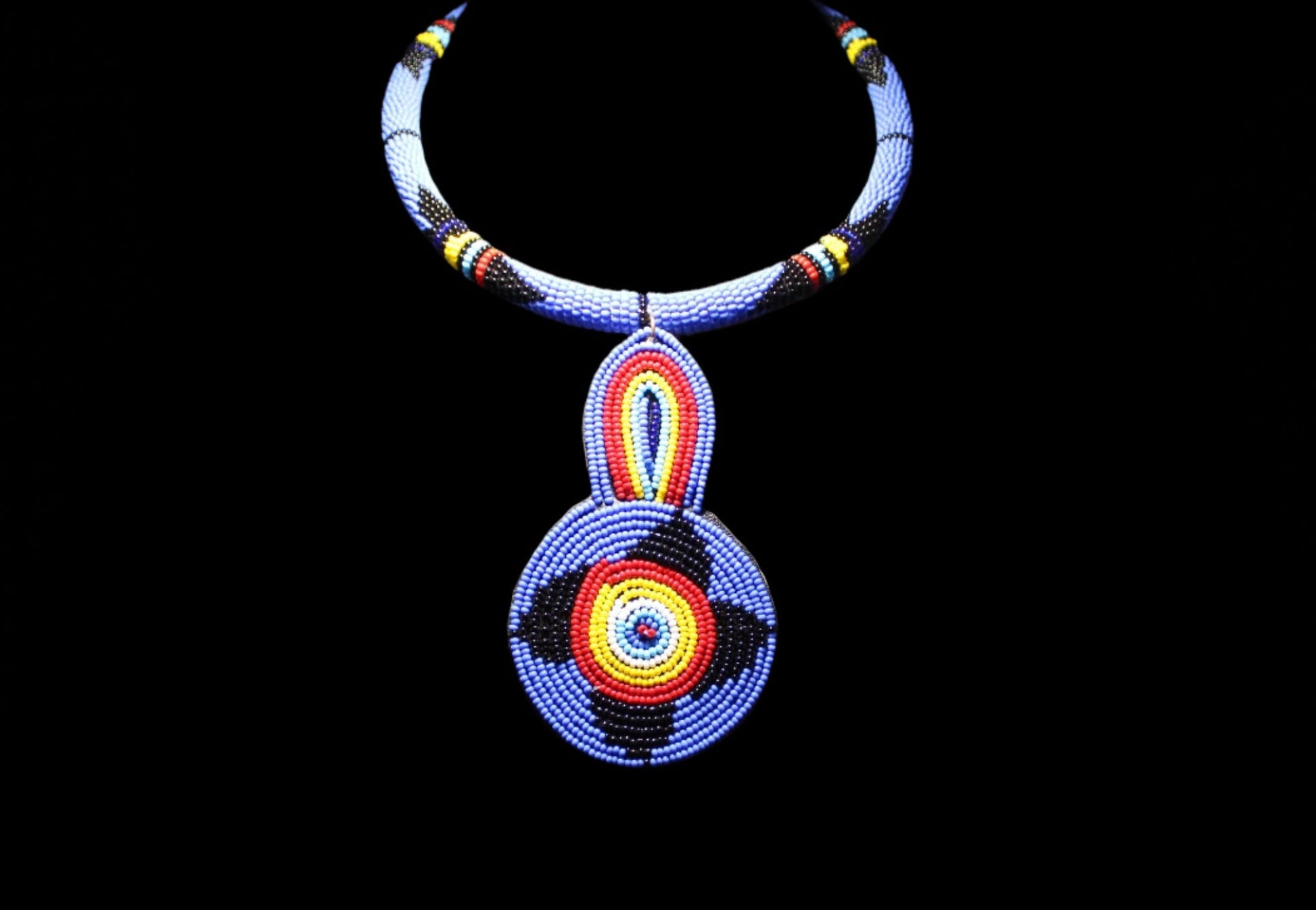 Celebrate heritage and artistry with the Maasai Kaleidoscope Circle Necklace — a bold, hand-beaded statement piece inspired by the vibrant symbolism of the Maasai tribe. Featuring intricate color patterns in radiant blue, red, yellow, and black, this necklace is more than jewelry; it’s wearable art echoing tradition and strength. The large circular pendant draws the eye and speaks volumes about cultural pride and timeless craftsmanship.