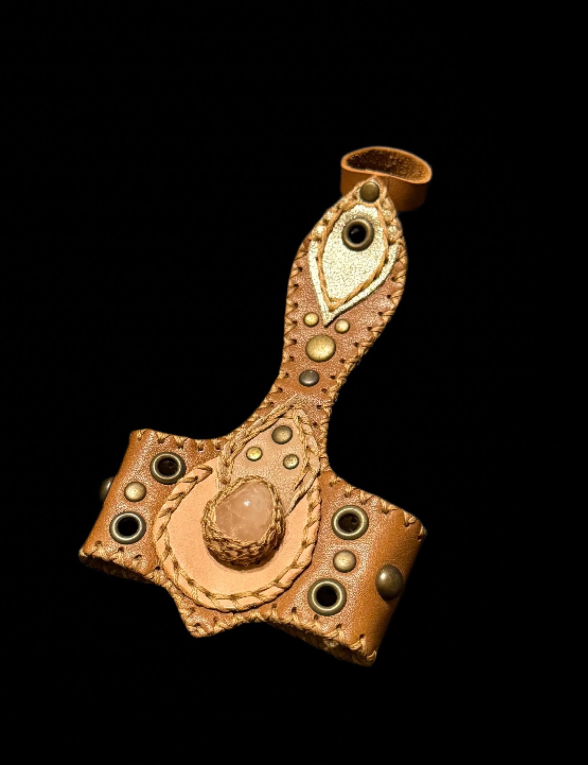 This unique piece fuses tribal elegance with boho spirit, featuring intricate metal studs, an eye-inspired motif, and a polished gemstone centerpiece. Skillfully designed to wrap gracefully around the wrist and drape over the back of the hand, it connects to a finger ring for a statement look that’s both bold and ethereal.